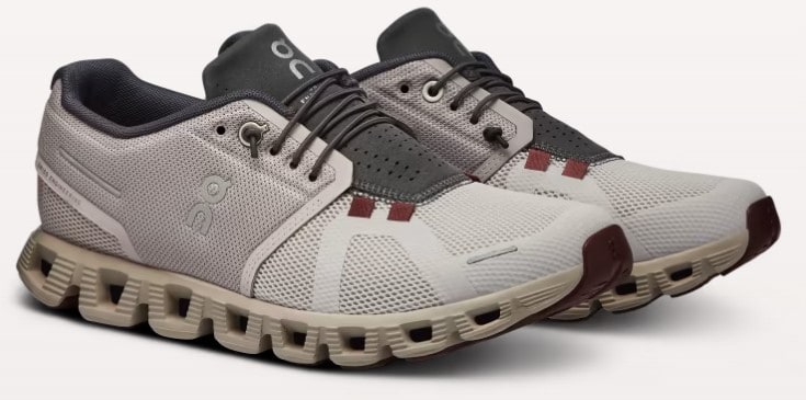 - On Cloud 5 – WOMENS/MENS – This ultralight running and walking shoe is a neutral model with a smooth ride. The wide toe box is enhanced by the convenient lock-laces. It’s a lot like the sports car that gets you places quickly and won’t weigh you down.